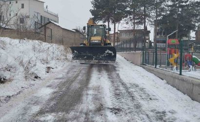 Ekipler, yoğun kar sonrası okullarda kar küreme ve tuzlama yaptı