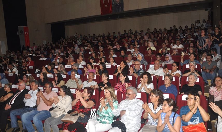 Türk halk müziği sanatçısı Bedia Akartürk, memleketi İzmir'in Ödemiş ilçesinde halk eğitim merkezi kursiyerlerinin konserinde şeflik yaptı. Akartürk'ün sezon boyunca ders verdiği koro, Ödemiş Belediye Kültür Merkezi'nde yıl sonu konserine çıktı. Koroyu yöneten 84 yaşındaki Akartürk, türküler de seslendirdi.