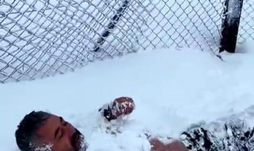 ÖNER ÇAĞLAYAN, EKSİ 15 DERECEDE KAR BANYOSU YAPTI.