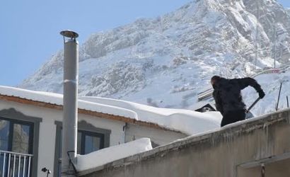 ŞIRNAK'TA KAR YAĞIŞI SONRASI DAMLARDA BİRİKEN KAR TEMİZLİYOR.