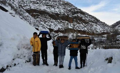Şırnak'ın Beytüşşebap ilçesinde kar kalınlığının 2 metreye ulaşmasıyla birlikte kullanılmayan yollar, çocukların ve yetişkinlerin oyun alanına dönüştü.