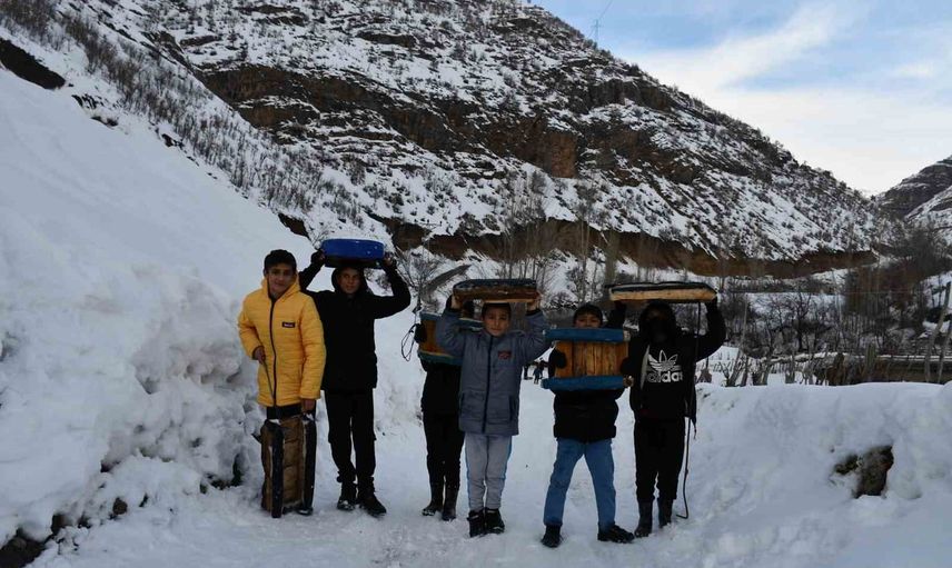 Beytüşşebap'ta çocuklar kızakla kar keyfi