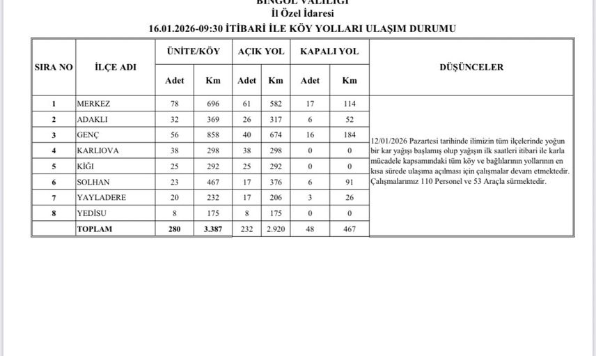 Çalışmaların sürdüğü 48 köy yolunda ekiplerin karla mücadele faaliyetleri devam ediyor. Yetkililer, ulaşımın tamamen normale dönmesi için çalışmaların yoğun şekilde sürdüğünü belirtiyor.