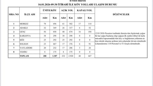 Bingöl'de karla mücadelede önemli adım: 232 köy yolu ulaşıma açıldı İl Özel İdaresi, 110 personel ve 53 araç ile çalışmalarını sürdürüyor Bingöl'de etkili olan kar yağışı sonrası ulaşım aksayan köy yollarının açılması için yürütülen çalışmalarda kayda değer ilerleme sağlandı. İl…