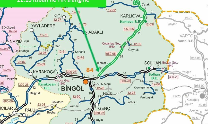 Bingöl Valiliği’nden yapılan açıklamada, "Bingöl-Diyarbakır Devlet Yolunun 0-31 km’leri arası (Genç ilçe girişi ile Diyarbakır il sınırı arası) saat 12.10 itibarıyla; Bingöl-Elazığ Devlet Yolunun 0-51 km’leri arası (Bingöl Sancak kavşağı ile Karakoçan ayrım kavşağı arası) saat 12.15 itibarıyla; Bingöl-Erzurum Devlet Yolunun 0-88 km’leri arası ( Karvansaray kavşağı ile Bingöl-Erzurum İl sınırı arası) saat 12.15 itibarıyla tır trafiğine açılmıştır" denildi.