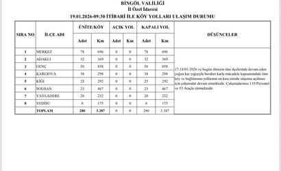 Bingöl’de dün gece başlayan ve etkisini sürdüren yoğun kar yağışı sonucu il genelinde bulunan 280 köy yolunun tamamı ulaşıma kapandı.