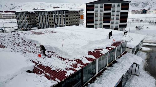 Bitlis'te yoğun kar sonrası esnaf ve belediye çatılarda ve yollarda kar temizliği yapıyor; 2 metreyi bulan birikintiler kontrollü şekilde indiriliyor.