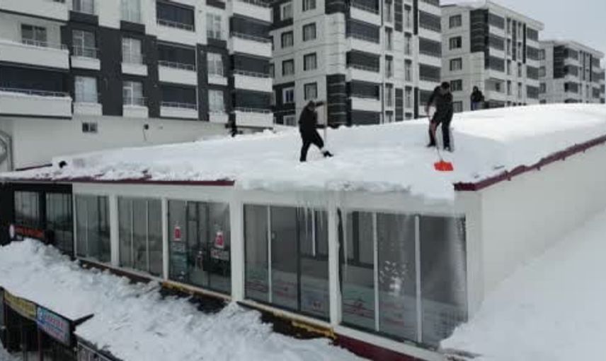 Özellikle son günlerde artan buzlanma riski nedeniyle çatılarda biriken karların can ve mal güvenliği açısından tehlike oluşturması üzerine esnaf ve bina sakinleri harekete geçti. Kar küreyicileri, emniyet ipleriyle güvenlik önlemi alarak çatı üstlerinde biriken karları temizlemeye başladı.