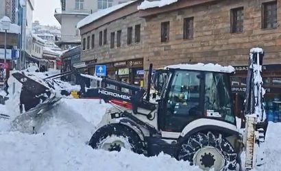 Bitlis Belediyesi’ne ait iş makinesi çarşı merkezinde kar temizliği yaptıği sırada, çatıda biriken kar kütleleri adeta bir şelale gibi makinenin üzerine aktı. Olayda herhangi bir can kaybı ya da yaralanma olmaması