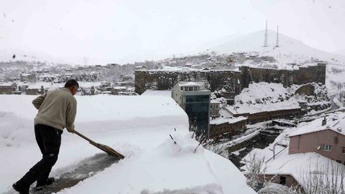 Bitlis’te yoğun kar yağışı sonrası vatandaşlar çatılarda biriken karı temizleyerek çökme ve düşme riskine karşı önlem alıyor.