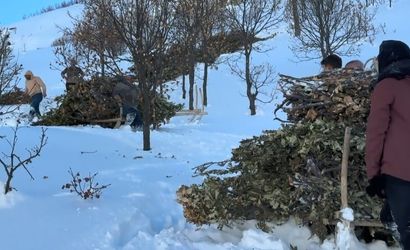 Bitlis'te yazın dağlık alanlarda toplanan yapraklı meşe dalları, kış aylarında karla kaplı yamaçlardan kızaklarla köylere indiriliyor. Başhan köyü ve çevresinde, kar kalınlığının yer yer 2 metreyi bulduğu bölgelerde besicilerin zorlu mesaisi dikkat çekiyor.
