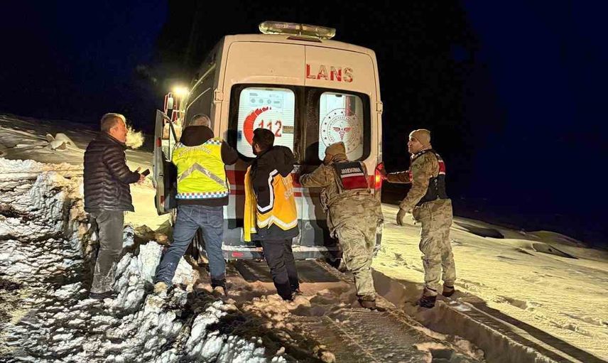 Ambulansın ilerleyemediği yolda iş makineleri öncülük ederek kar savurma ve yol açma çalışması yaptı. Yaklaşık 2 saat süren zorlu çalışmanın ardından sağlık ekipleri hastaya ulaştı ve olay yerinde ilk müdahale gerçekleştirildi.