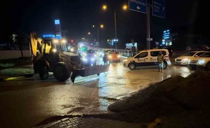 İtfaiye ve belediye ekiplerinin müdahalesiyle araç kurtarıldı; Ortakent Kavşağında yoldan gelen mil ve kum birikintileri ulaşımı durma noktasına getirdi. Belediye ekipleri yolu yeniden ulaşıma açmak için çalışma başlattı.