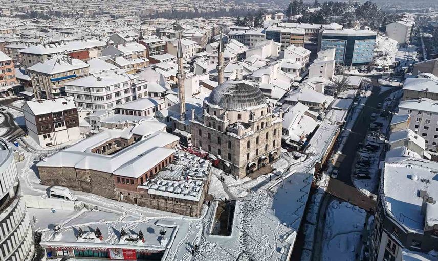 Kent merkezinin karla kaplı silueti, yoğun yağışın ardından ortaya çıkan sakin ve parlak atmosferle birlikte görsel açıdan dikkat çekici kareler oluşturdu. Dron görüntüleri, karın etkilediği şehir dokusunu ve çalışma yürütülen yolları net biçimde ortaya koydu.