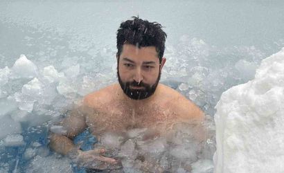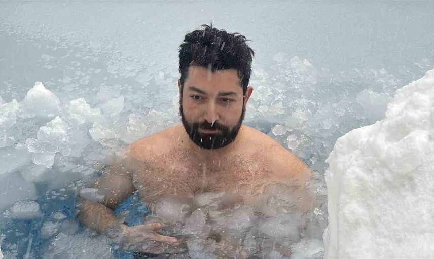 Bolu'da yılbaşı tatili için kente gelen Eren Biri, hava sıcaklığının eksi 10 dereceye kadar düştüğü Bolu Dağı bölgesinde soğuk suya girerek ilgi odağı oldu.