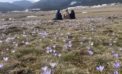 Bolu'da havaların ısınmasıyla Sarıalan Yaylası'nda çiğdemler çiçek açtı.
