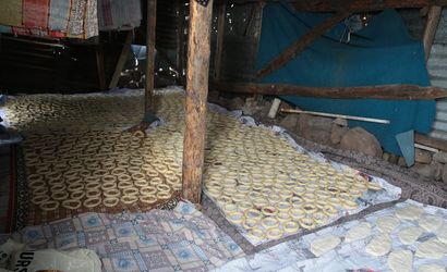 Bolu'nun Kıbrıscık ilçesinde köklü geçmişe sahip "kürül" adı verilen hamur işi yiyecek, kadınlar tarafından imeceyle yapılarak kış boyu sofralardaki yerini alıyor.