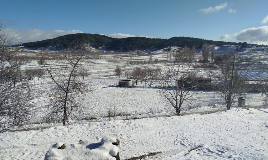 Kovanoluk Mahallesi'nde yaşayan çiftçiler, yüksek kesimleri beyaza bürüyen kar yağışının ardından rahat bir nefes aldı.