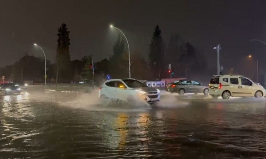 Trafik lambalarının bulunduğu bölgede oluşan su birikintileri nedeniyle araçlar ilerlemekte güçlük çekti; sürücüler zor anlar yaşadı.