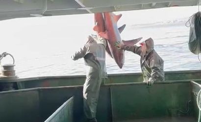 Çalı Balıkçılık isimli tekneyle avlanan balıkçılar, ağlarını topladıkları sırada ağ içinde büyük cisimler olduğunu fark etti. Yapılan kontrolde ağın içinde 2 'kamçı kuyruk' cinsi köpek balığı olduğu görüldü.