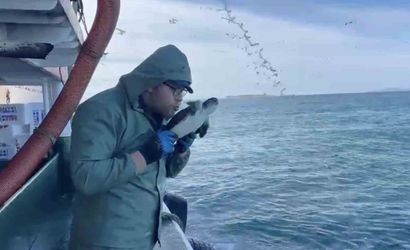 Duyarlı balıkçılar, caretta carettayı kısa sürede kurtardı ve büyük bir titizlikle doğal yaşam alanına geri saldı. O anlar cep telefonu kamerasına yansırken, teknedeki bir balıkçının caretta carettayı salmadan önce vedalaşıp öpmesi izleyenlerin yüreğini ısıttı.