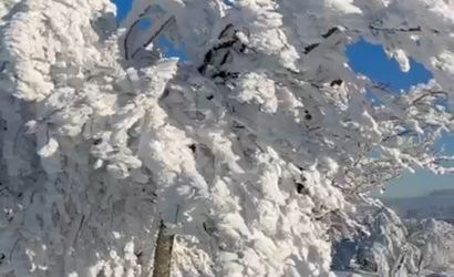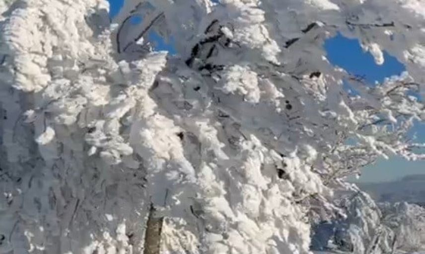 Zirvede kaydedilen görüntüler, ağaçlardan sarkan buz sarkıtları ve bembeyaz kar örtüsüyle adeta donmuş bir dünyayı gözler önüne serdi. Bölgeyi ziyaret edenler ve off road için özel aracıyla zirveye çıkanlar, bu eşsiz soğuk manzarayı kayda aldı.