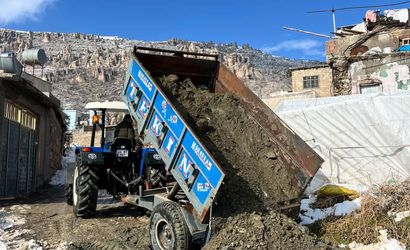 Mahalle sakinleri, yolu onarmak için bir araya geldi ve imece usulü çalışmayla kendi traktörleriyle malzeme taşıyarak ve onarımlar yaparak yolu tekrar kullanıma açtı.
