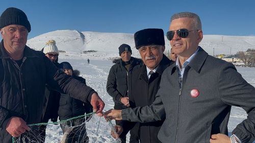Ardahan Çıldır Gölü'nde protokol üyelerinin katılımıyla ağ çekme etkinliği yapıldı; 14 Şubat'taki Kristal Buz Festivali'ne davet yapıldı.
