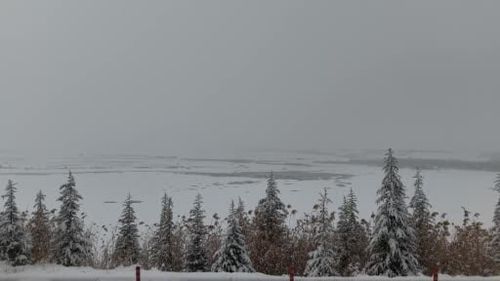 Elazığ'da soğuk hava dalgası Cip Baraj Gölü'nün yüzeyinin donmasına yol açtı; göl karla kaplandı ve dronla görüntülendi.