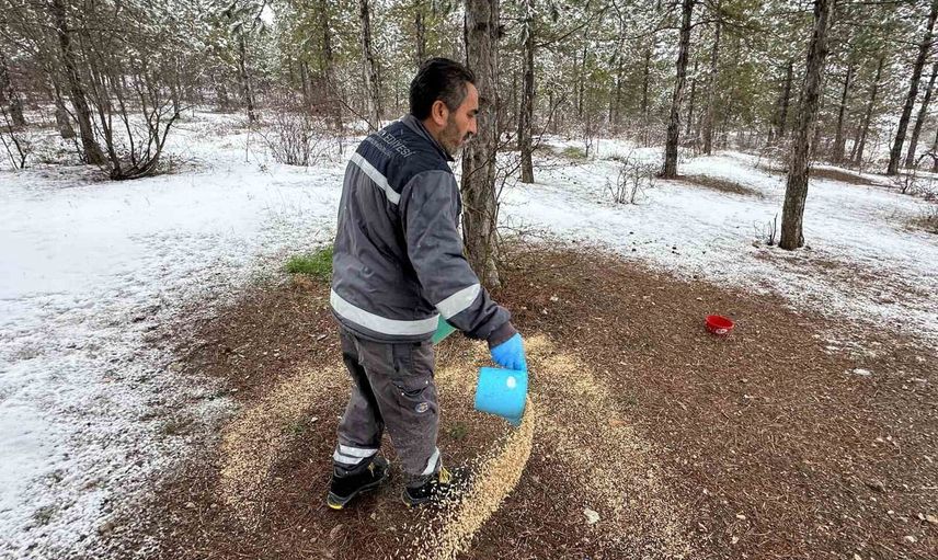 Çorum Belediyesi, kış mevsiminin etkisini artırdığı soğuk günlerde doğal ortamlarında yiyecek bulmakta zorlanan yaban hayvanları ve kuşlar için doğaya yem bıraktı.