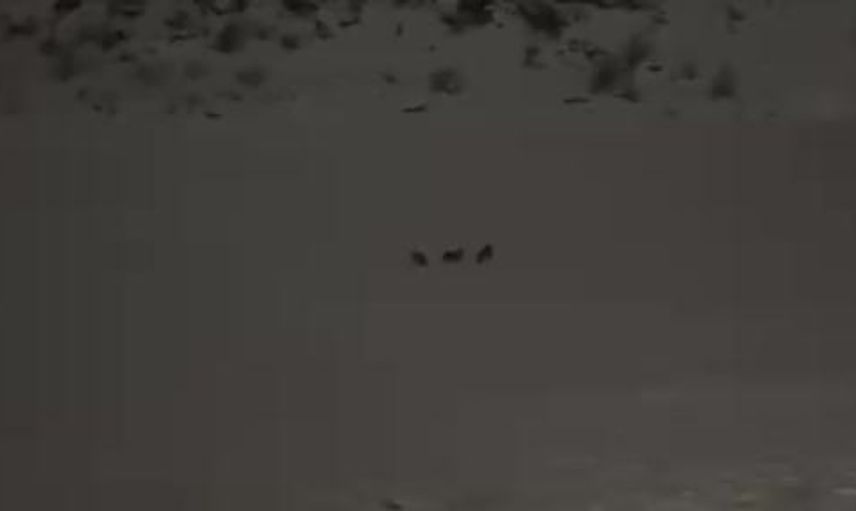 Yeni yıl akşamı etkili olan lapa lapa kar yağışı altında dolaşan kurtlar, bölgedeki karla mücadele ekibi tarafından kayda alındı.
