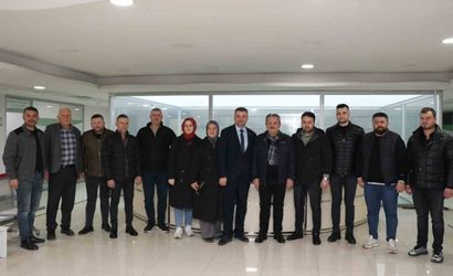 Cumayeri Esnaf ve Sanatkarlar Odası Başkan Adayı Aydın Garip ve beraberindeki heyet, Cumayeri Belediye Başkanı Mustafa Koloğlu'nu makamında ziyaret etti.