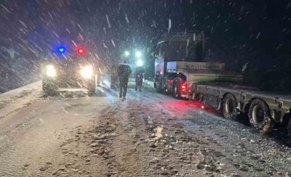 Şanlıurfa ile Gaziantep’i birbirine bağlayan D-400 karayolu, yoğun kar yağışı nedeniyle ulaşıma kapandı. Yolda kalan sürücülere polis ve jandarma ekipleri yardım ulaştırdı.