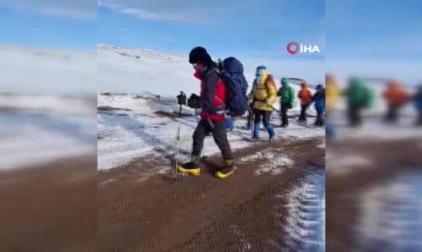 Yaklaşık 40 dağcı, Türkiye’nin çeşitli illerinden bölgeye gelerek soğuk ve tipiye aldırış etmeden 3 bin 180 rakımdaki zirveye ulaştı. Zirvede Türk Bayrağı açıldı ve şehitler için dualar edildi.