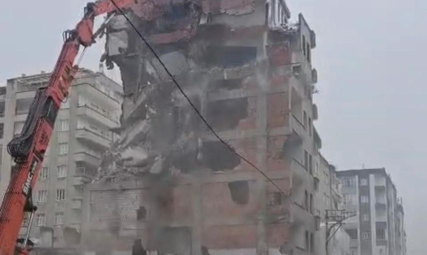 Diyarbakır'da Ağır Hasarlı Bina Kontrollü Yıkımda Hızla Çöktü