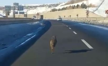 Diyarbakır'ın Yenişehir ilçesinde, Elazığ Bulvarı Devegeçidi Köprüsü mevkisinde dikkat çeken görüntüler kaydedildi. Yoğun kar yağışı nedeniyle bazı bölgelerde görülen kurtlar arasında, bir kurtun bir aracın önünde uzun süre koştuğu anlar yer aldı.