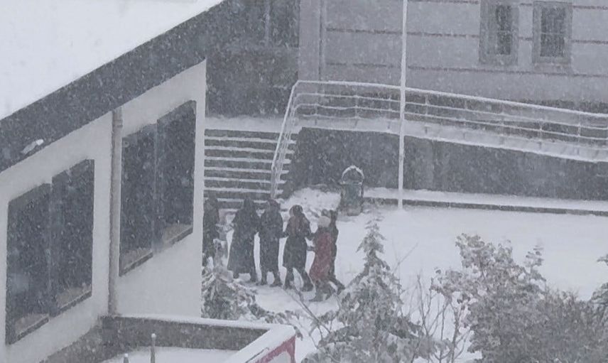 Öğrencilerin keyif dolu anları, cep telefonuyla kaydedildi; kayıtlarda kar sevinci ve birlikte yaşanan kardeşlik duygusu dikkat çekiyor.