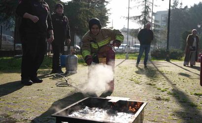 Uygulamalı eğitimde ise katılımcılar öğrendiklerini birebir uygulama fırsatı buldu. Kursiyerler, eğitim kapsamında yangın söndürme tüplerini kullanarak kontrollü şekilde müdahale etti ve acil bir durumda nasıl hareket etmeleri gerektiğini deneyimledi.