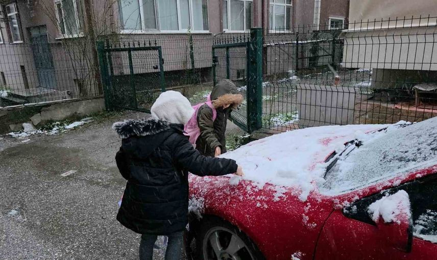 Kar yağışı, Düzce şehir merkezinde sabah erken saatlerde etkili olurken; araçların üzerinde ve yerlerde ince bir tabaka oluşturdu. Okula gitmeye hazırlanan çocuklar, beklenmedik kar sürpriziyle karşılaştı. Araçların üzerindeki karı gören minikler kısa bir eğlencenin ardından okullarına gitti.