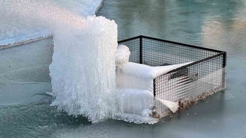 Edirne'de gece sıcaklıklarının -5, hissedilenin ise -10 dereceye düşmesiyle Barış Parkı'ndaki süs havuzları buz heykellerine dönüştü.