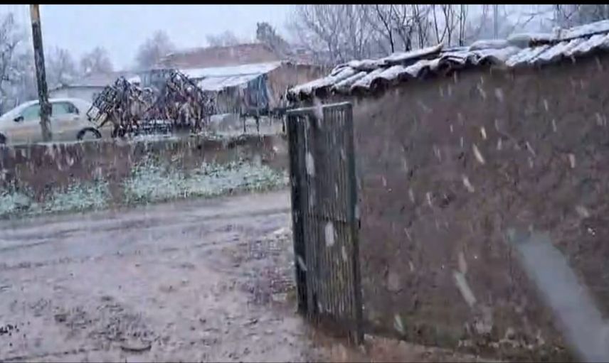 Edirne'nin Lalapaşa ilçesine bağlı Hamzabeyli köyü'nde gün boyu süren yağmur, akşam saatlerinde yerini kara bıraktı. Balkanlar üzerinden yurda giriş yapan soğuk hava dalgasıyla birlikte 2026 yılının ilk karı, Edirne'nin sınır köylerinde yüzünü gösterdi.