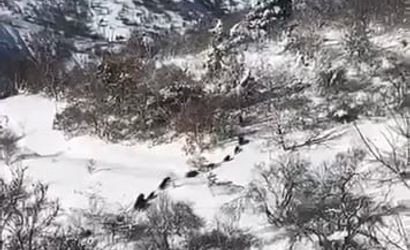 Sürü, yiyecek ararken bir vatandaşın cep telefonu kamerasına yansıdı. Kısa süreli görüntülerde hayvanların karlı arazide yiyecek aradığı görülüyor.