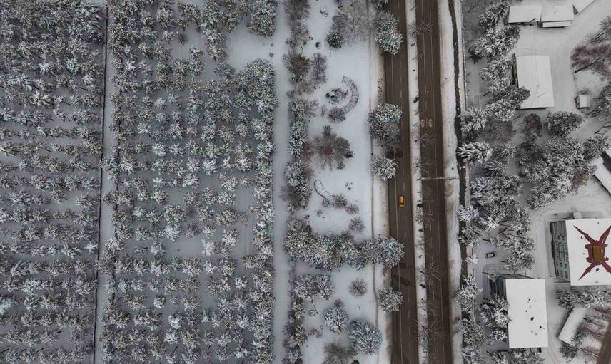 Genellikle yüksek kesimlerde görülen yoğun kar manzaraları bu kez şehrin kalbinde ortaya çıktı. Beton binaların ve ana arterlerin çevrelediği alandaki kar örtüsü, Zübeyde Hanım Caddesi yakınındaki ormanlık alanda dev bir kış bahçesi görünümü sundu.
