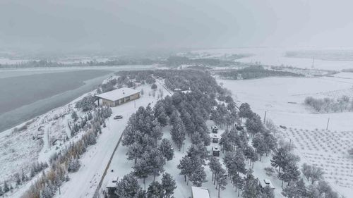 Elazığ'da etkili soğuklar nedeniyle Cip Baraj Gölü'nün bazı kesimleri dondu; oluşan buzlar dronla görüntülendi.