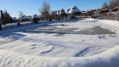 Elazığ'da iki günlük karın ardından sıcaklık eksi 13'e düştü; gece ve sabah don olayı yaşandı, Kültür Park'taki süs havuzları tamamen buz tuttu.