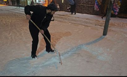 Yağışın azalmasının ardından, esnaflar kürekler ve fırçalar ile kar temizliği yaptı. Birçok iş yerinin önü karla kaplanmış durumdaydı.
