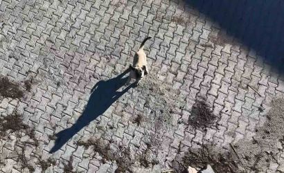 Dronun hareketlerine göre onu takip eden köpek, dron hızlandığında peşinden koşup onu yakalamaya çalıştı. Köpeğin dronu yakalamak için verdiği mücadele renkli görüntüler oluşturdu.