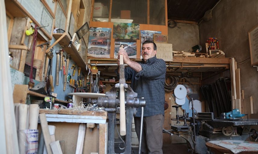 Bayburt'ta yaşayan emekli öğretmen Osman Kodan, babasının 80 yıl boyunca sürdürdüğü marangozluk mesleğine, asırlık bir binada devam etmenin gururunu yaşıyor.