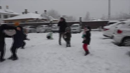 Van'ın Erciş ilçesinde etkili kar yağışı sonrası vatandaşlar sokaklarda kartopu oynayıp kardan adam yaparak karın keyfini sürdü.