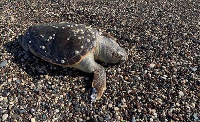 Olayı görenlerden Ahmet Şahin durumu şöyle anlattı: "Sahilde gezerken deniz kenarına indiğimde kaplumbağanın dalgalarla kıyıya vurduğunu gördüm. Ölmüş vaziyetteydi, yetkililere haber verdik. Gelip alacaklar."